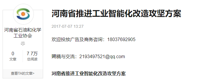 2017年8·月,河南省政府出臺《河南省推進工業智能化改造攻堅方案》,引導企業實施“設備換芯”、“生產換線”和“機器換人”。方案指出,重點企業建設智能車間智能工廠,省財政對其智能化改造項目按照軟硬件投資的8%予以補助,最高不超過1000萬元。每年滾動培育50個智能工廠、100個智能車間。